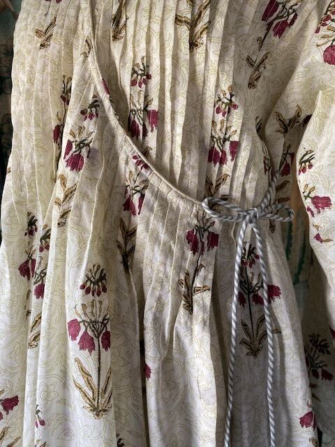 インドラジャスターン地方の伝統的なスタイル、ピンタックを前身頃にたっぷり取ったブロックプリントのカシュクールタイプのドレスです。