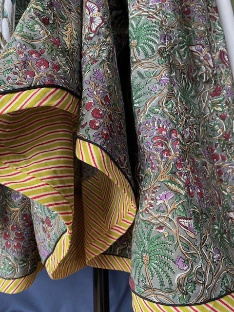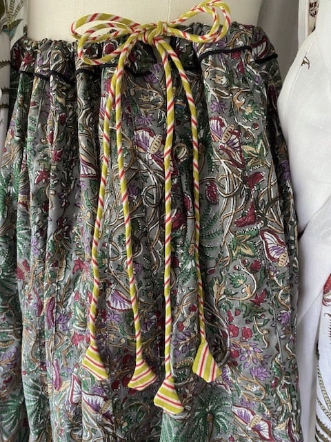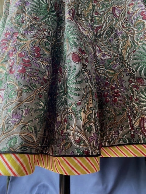 また裾の見返しに10センチほど、アクセントとなるブロックプリント布が全周に縫い込まれています。