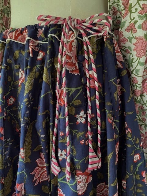 また裾の見返しに10センチほど、アクセントとなるブロックプリント布が全周に縫い込まれています。