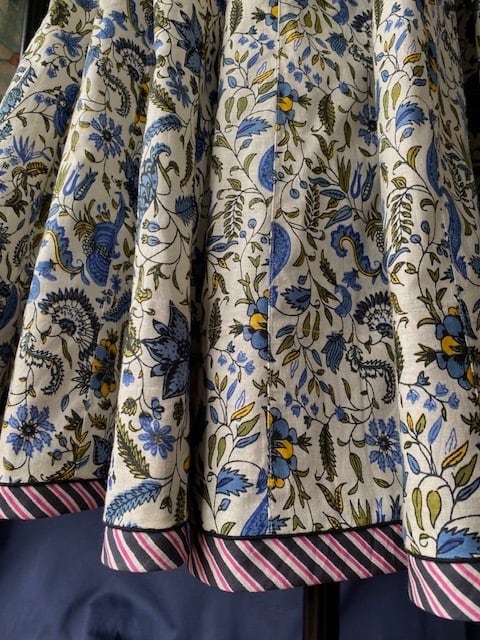 また裾の見返しに10センチほど、アクセントとなるブロックプリント布が全周に縫い込まれています。