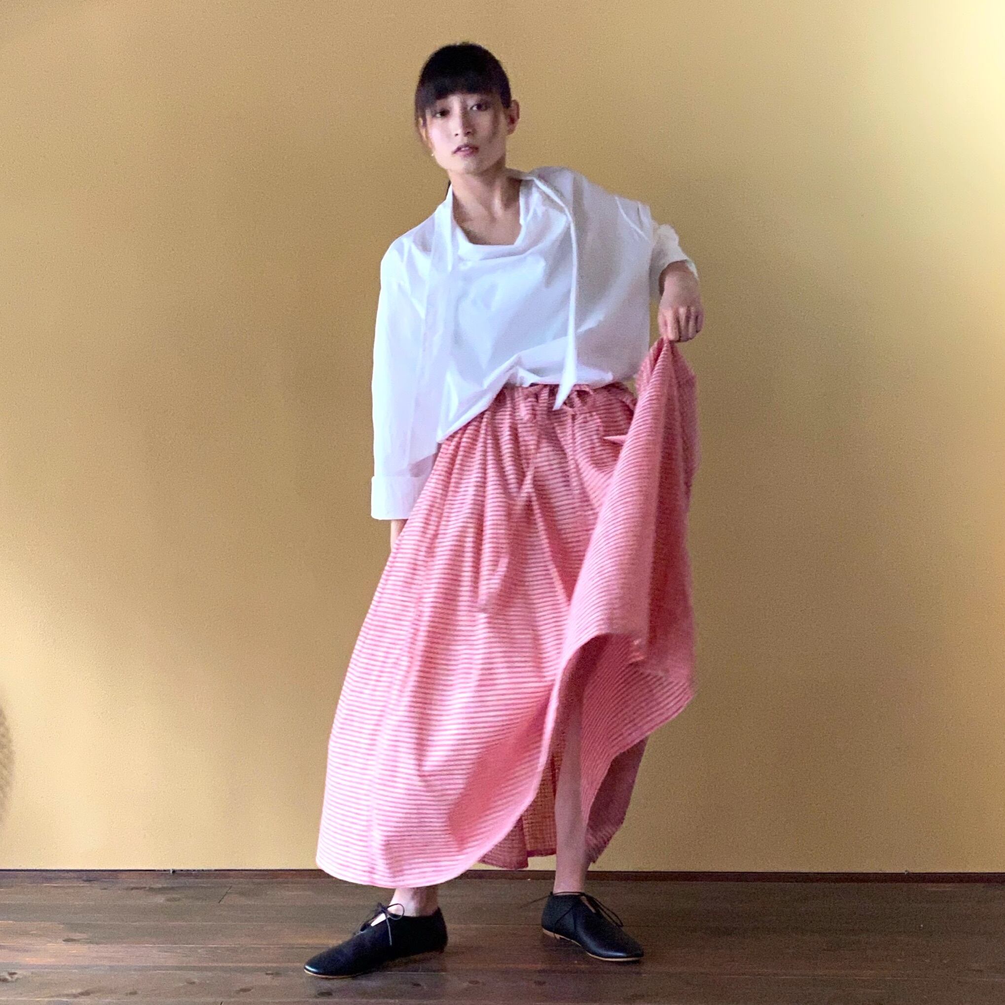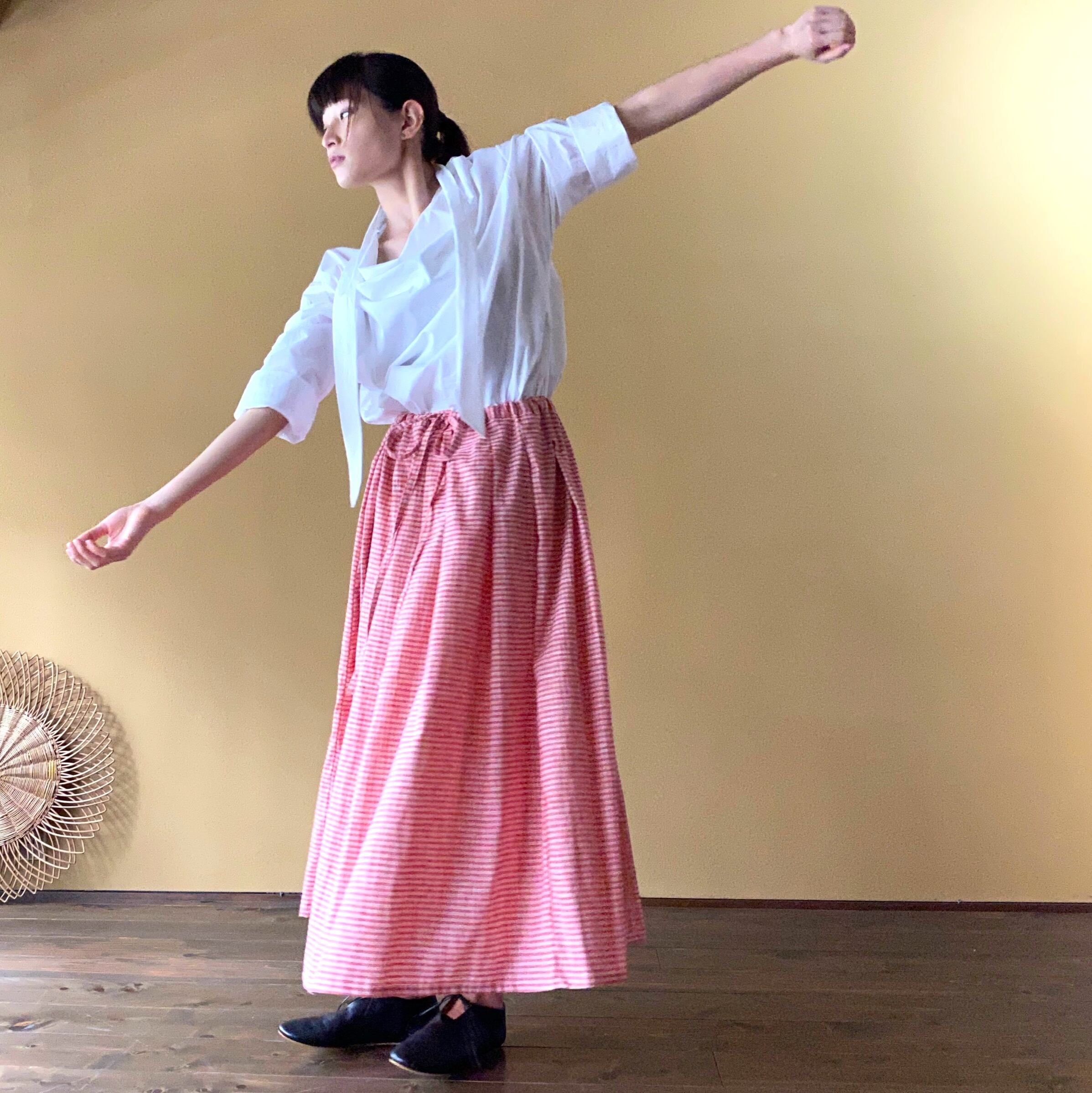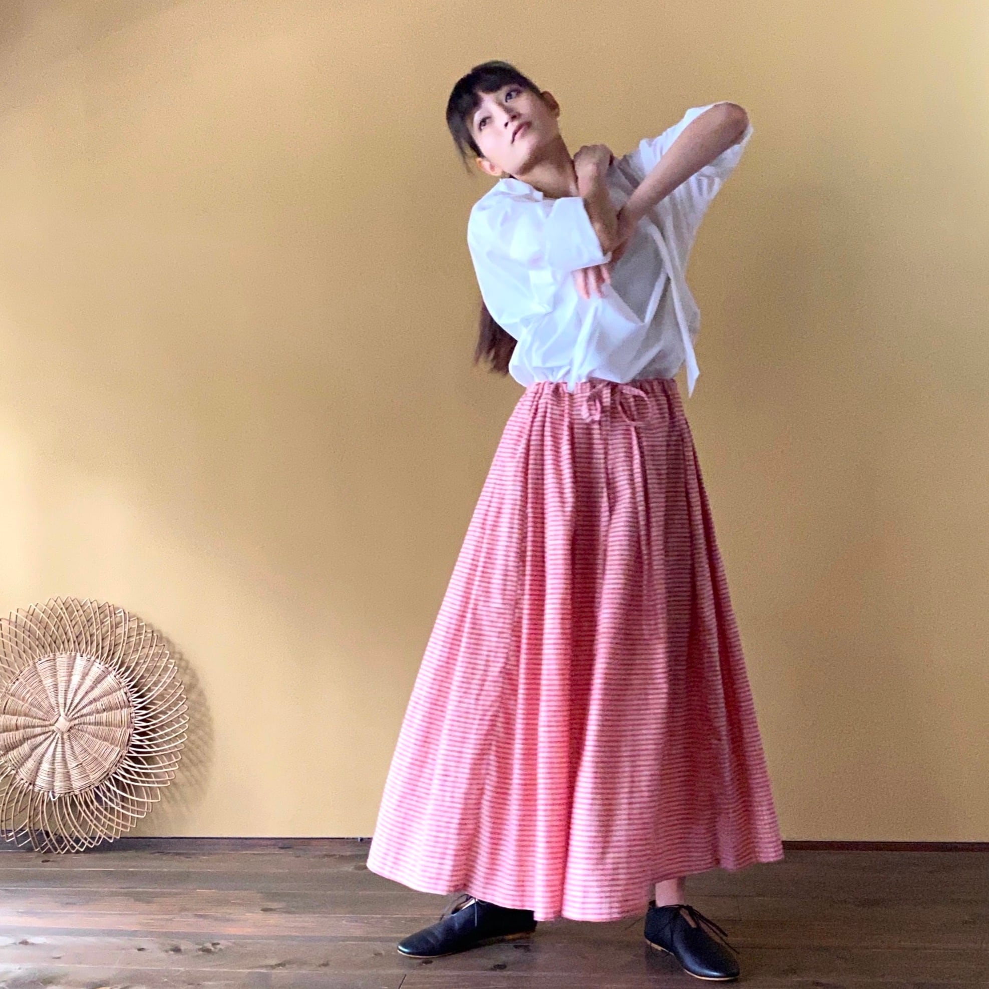 手織りのコットンを使用したウエスト周りにプリーツが施されたギャザースカートです。