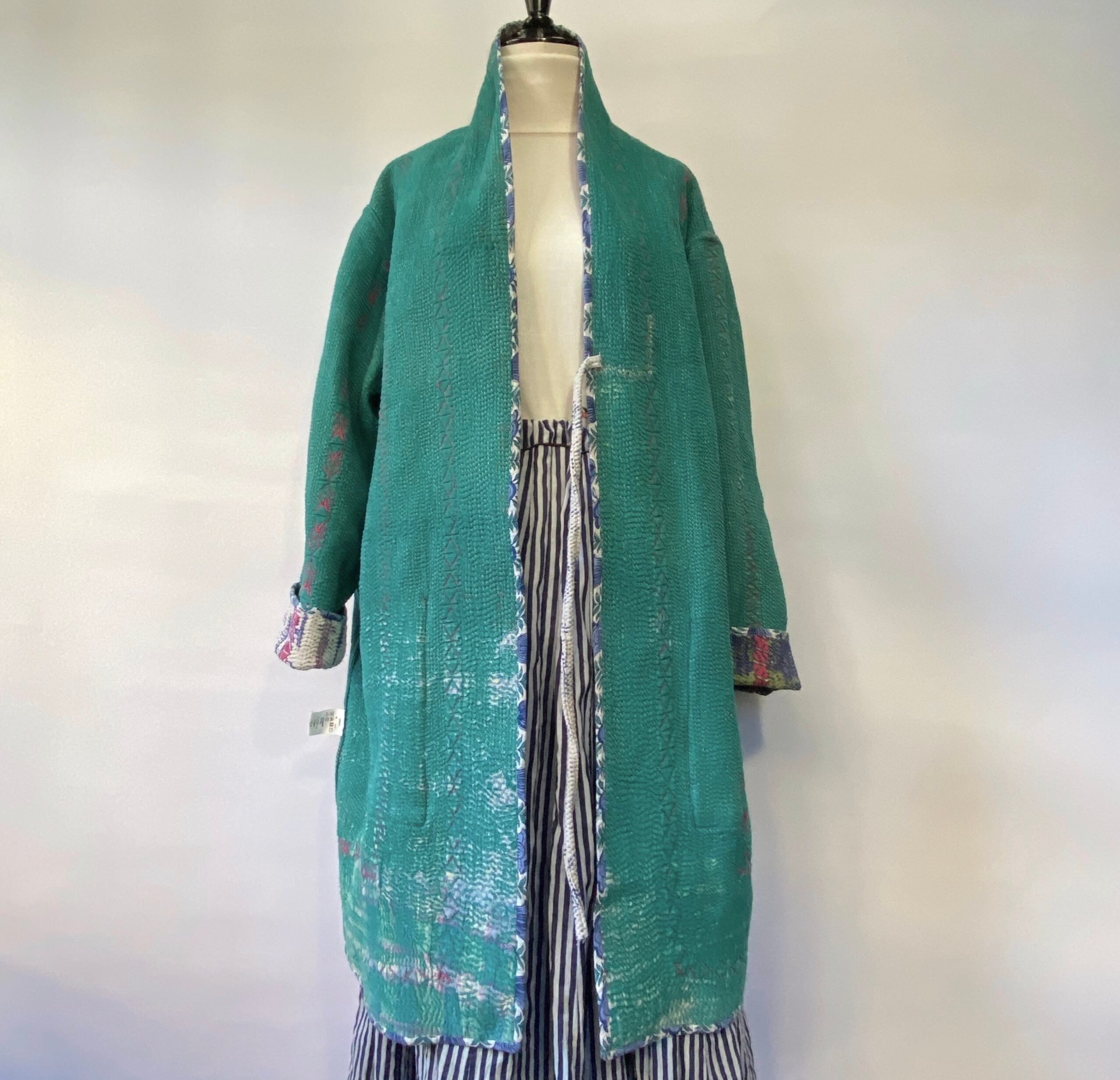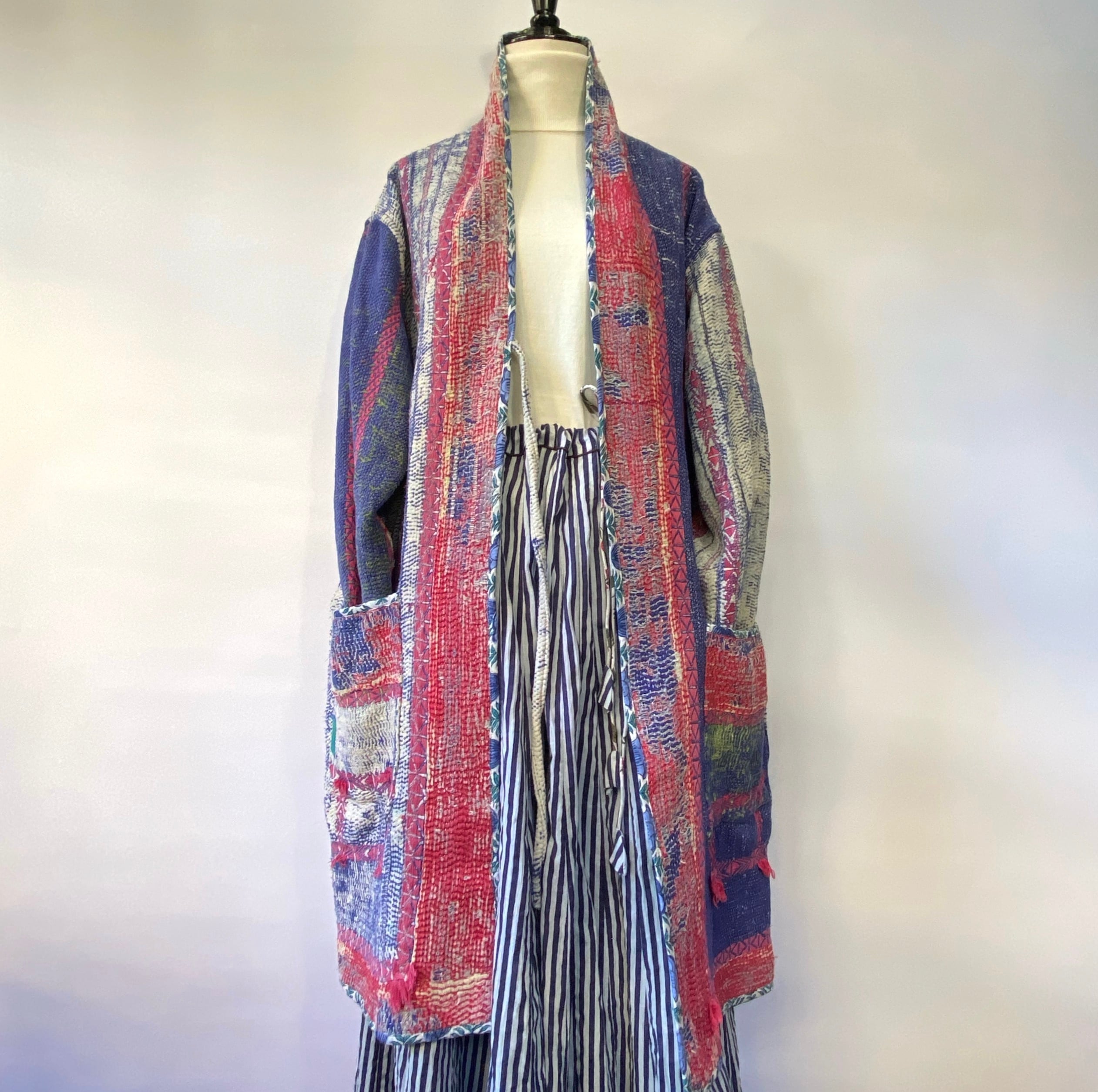 伝統的なハンドステッチが施された風合いのある生地が、職人さんの自由な感性によって裁断・縫製されたベルテッドコートです。