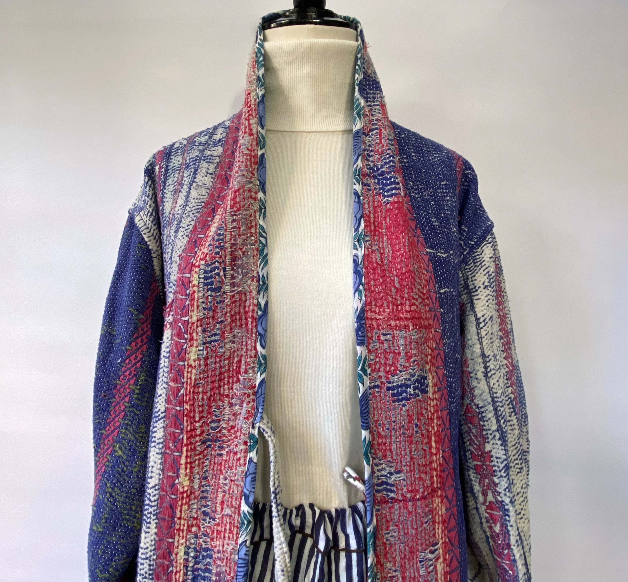 *時を経た生地から仕立てたお品ですので特に画像5枚目や7枚目で分かりますように、表面のほころびがありますが、お品の個性としてどうぞご了承下さいませ。